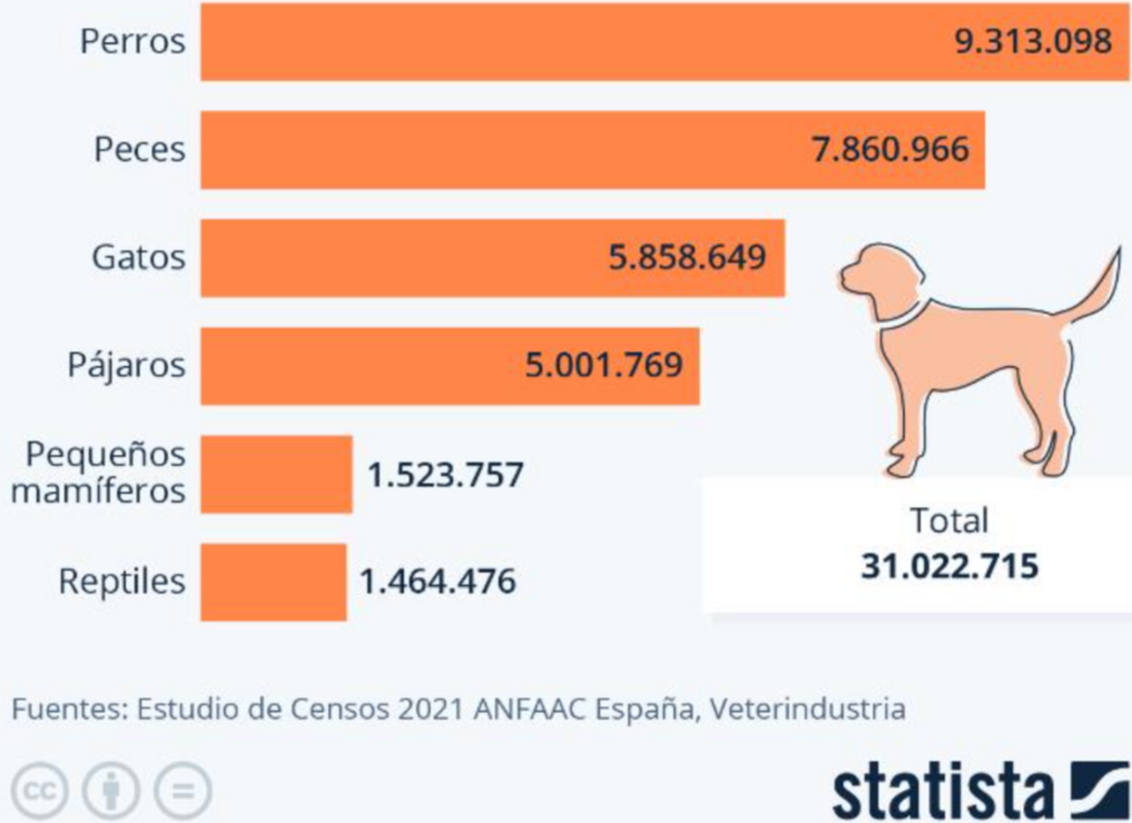 En España (y en la mayoría de países), los perros son el animal que más acompaña a las familias (más incluso que los niños).